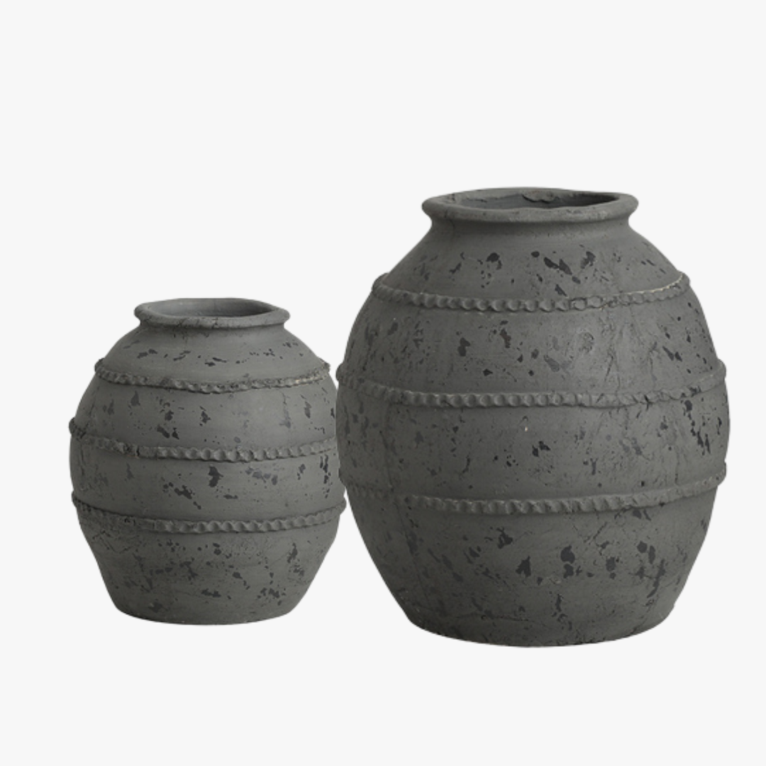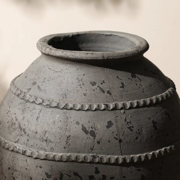 כדים שחורים משופשפים עשוים קרמיקה. מעוצבים בסגנון עתיק.