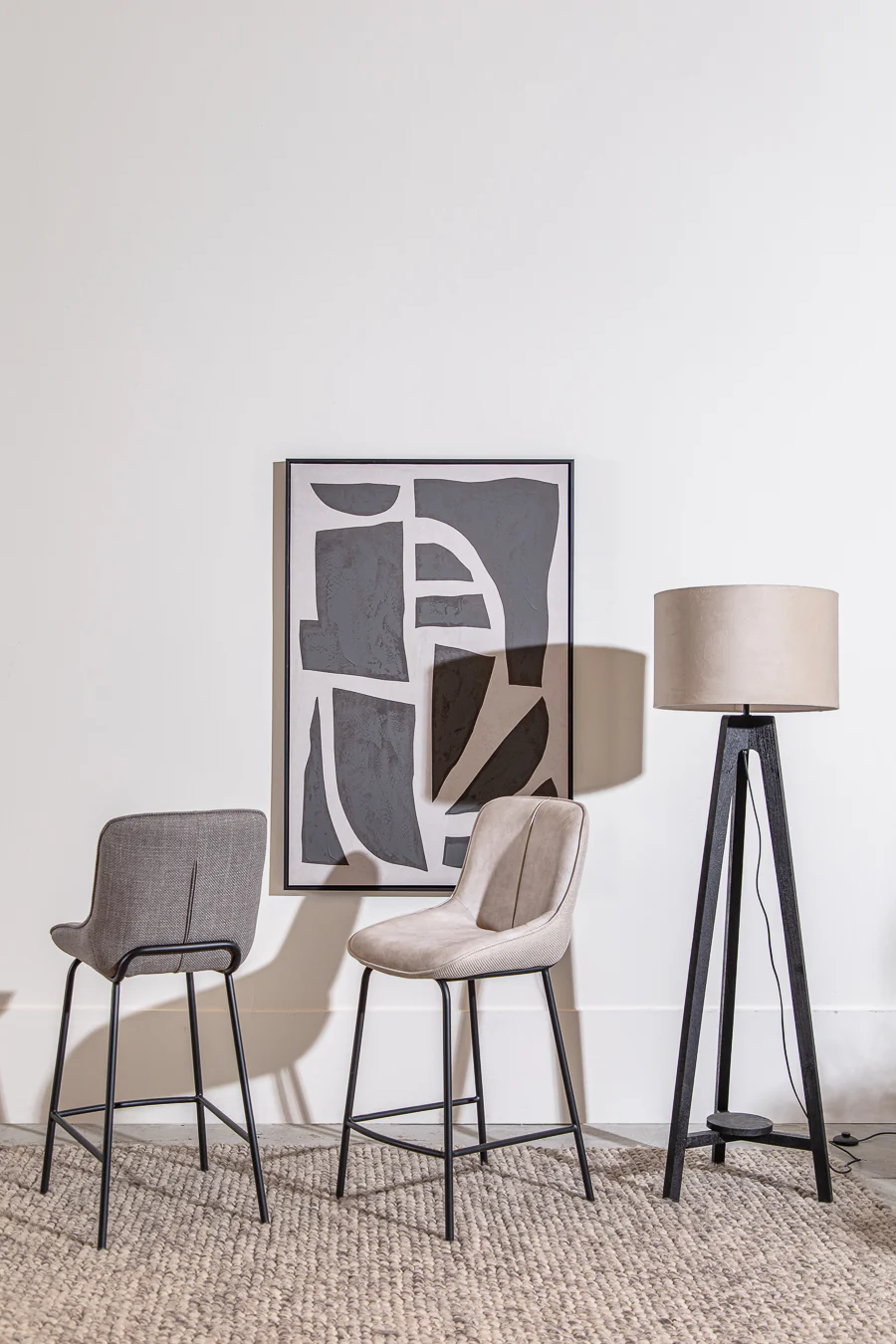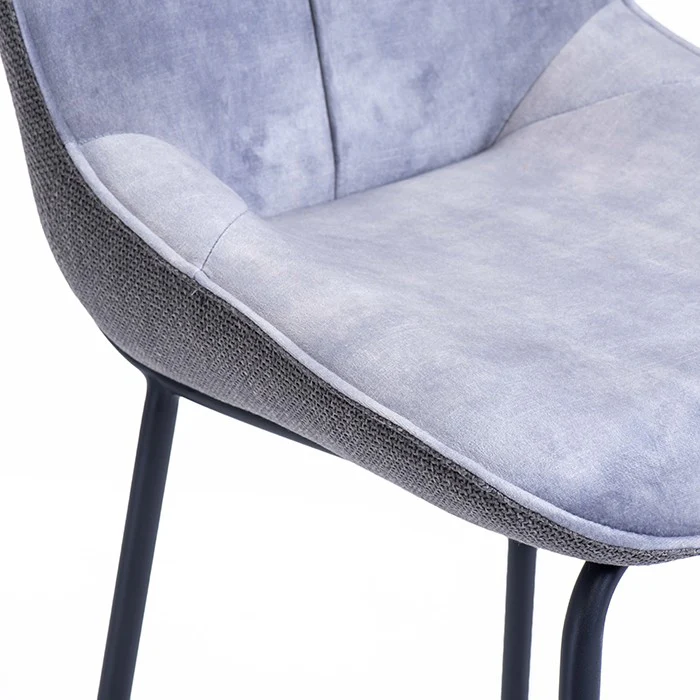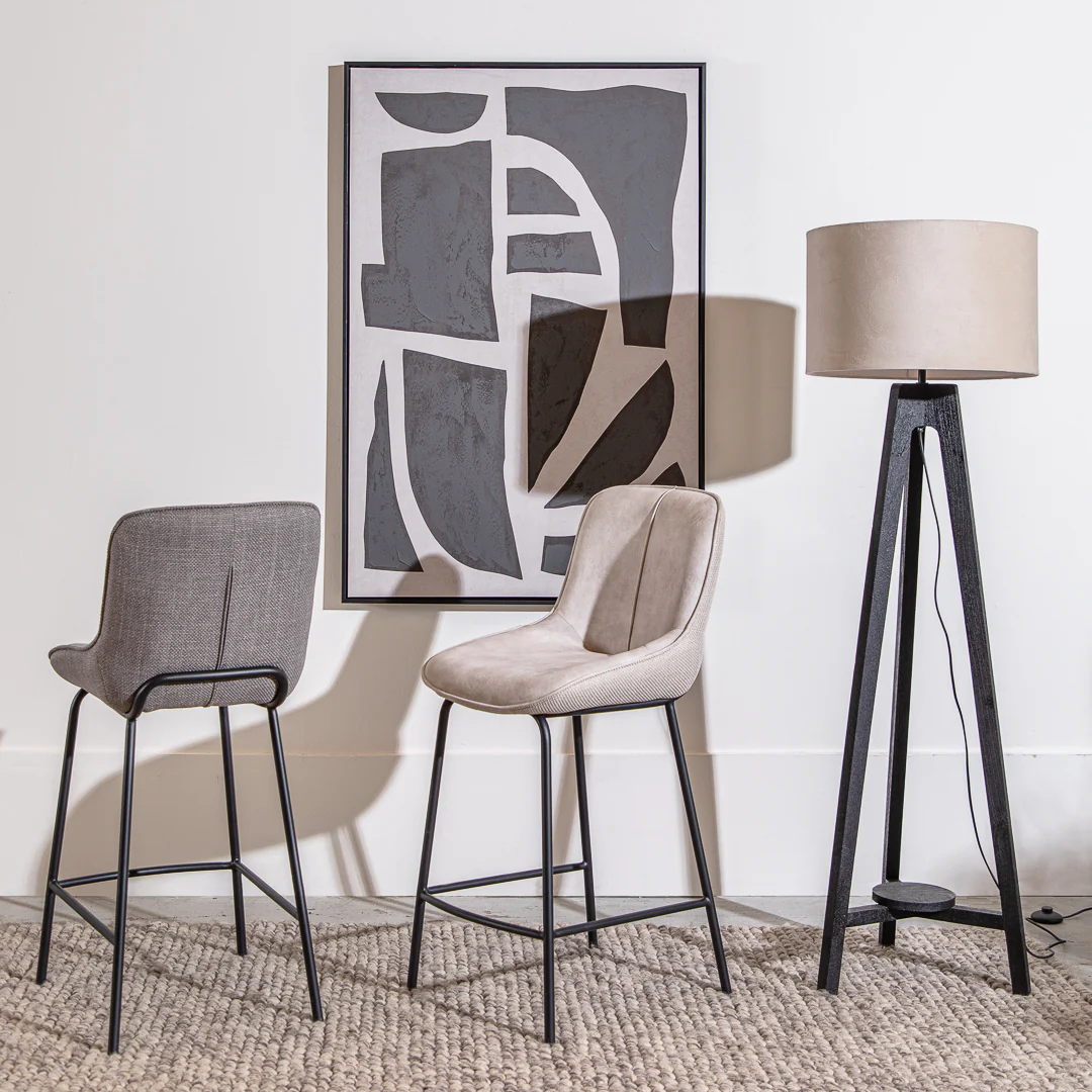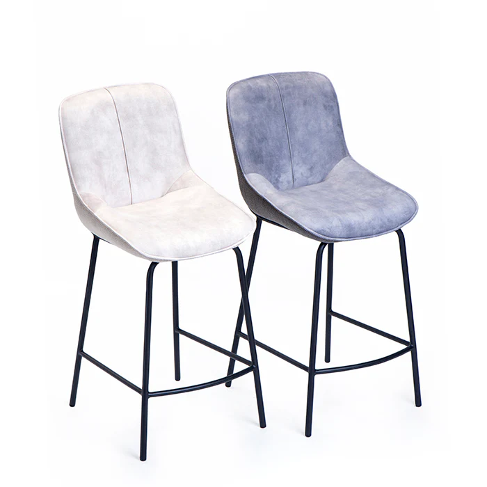 כיסא ישיבה בר טיילור מקשה אחת בגוון אפור. פריט ריהוט נישר בקו סקיני מרופד משענת ותושבת בד במרקם קטיפתי. כיסא מומלץ לשילוב סביב שולחן פינת האוכל או ככיסא לאירוח בחלל גדול