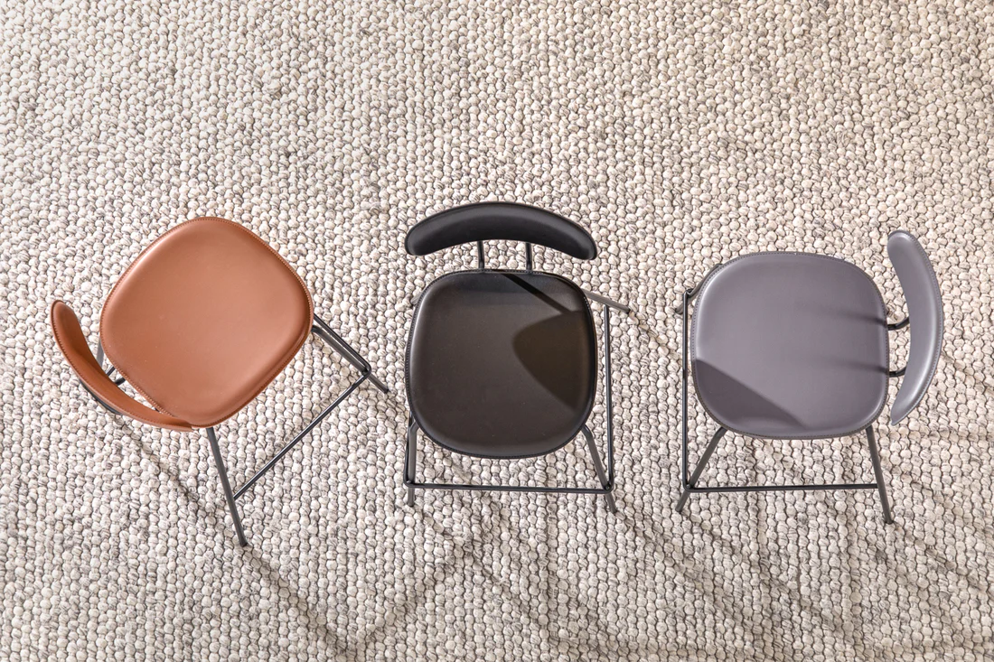 כיסא בר פרזנט מעוצב בגוון כאמל. כיסא fine מנימליסטי בעל פרופיל מתכת נוח לישיבה גבוהה בחלקו התחתון. פריט ריהוט מושלם לאירוח בקו נקי