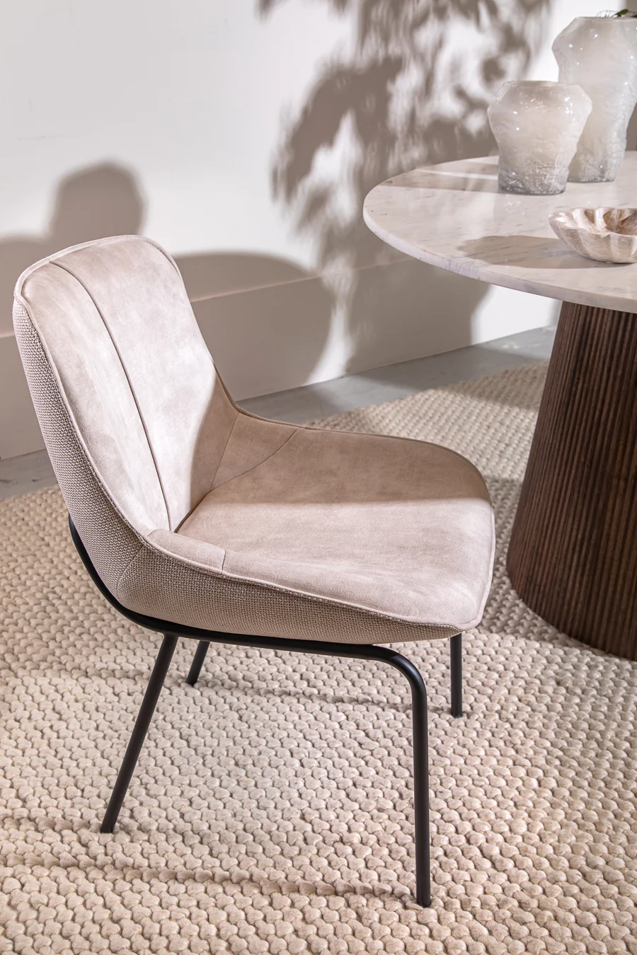 כיסא ישיבה טיילור אייבורי מקשה אחת בגוון שנהב. פריט ריהוט בקו סקיני מרופד משענת ותושבת בד במרקם קטיפתי. כיסא מומלץ לשילוב סביב שולחן פינת האוכל או ככיסא לאירוח בחלל גדול