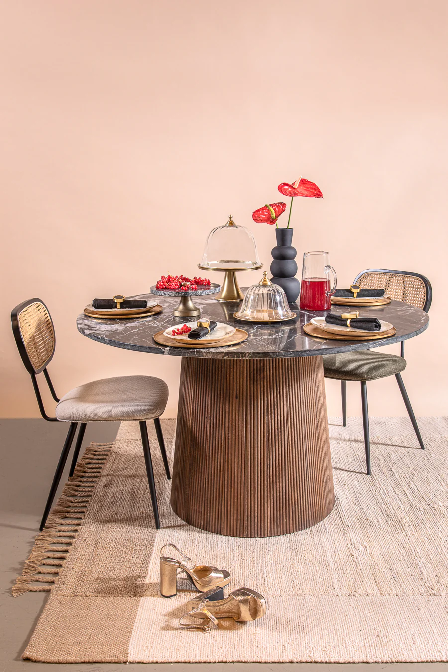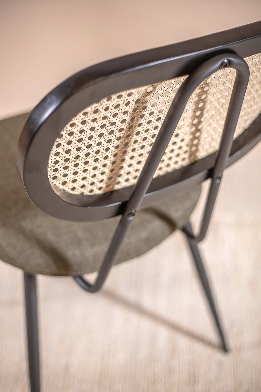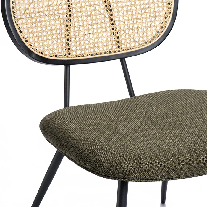 עץ גומי, רגליים ממתכת, בד, ראטן