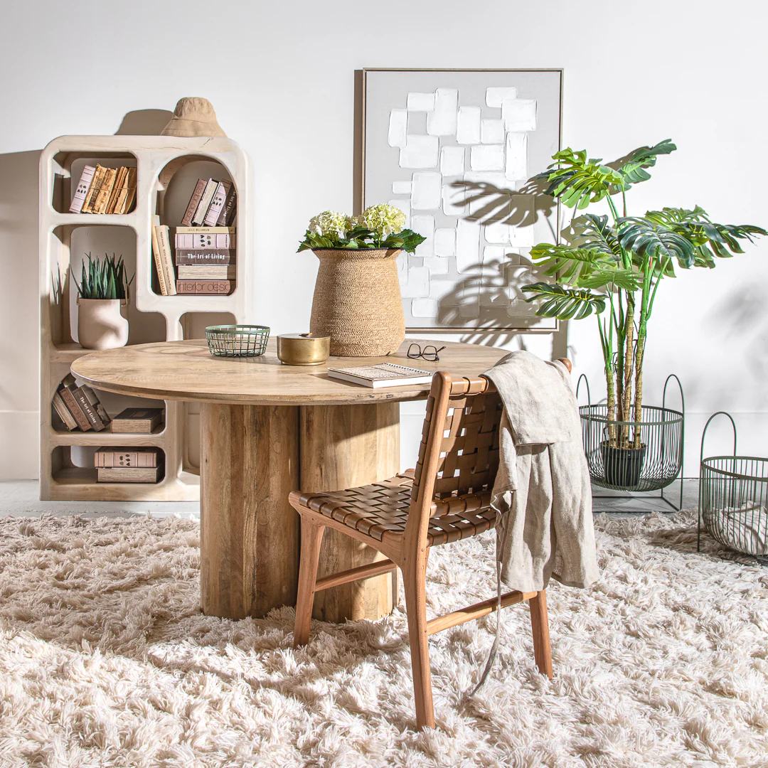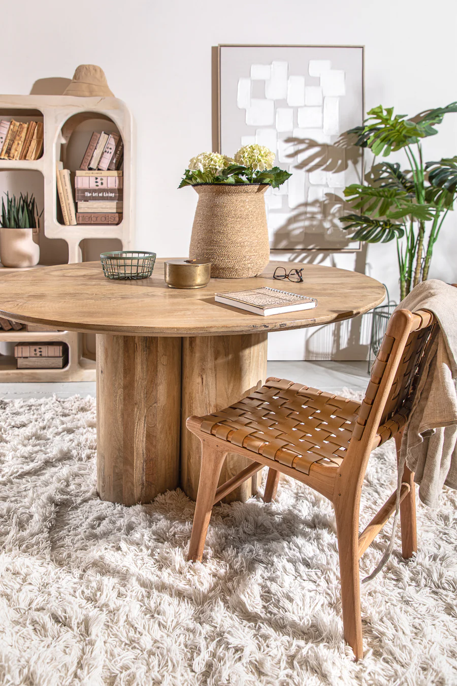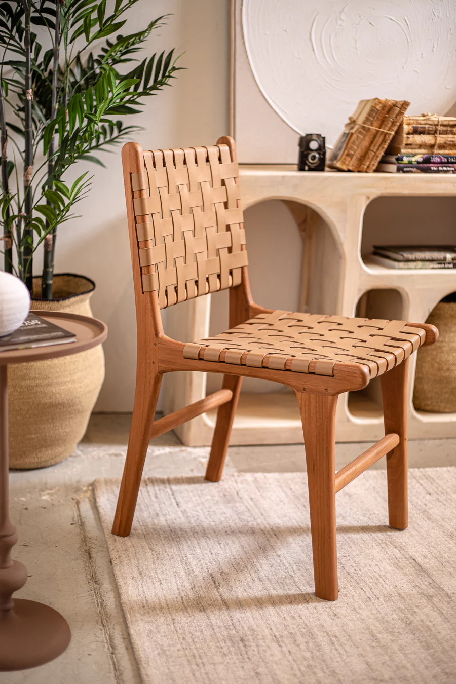 כיסא עור קלוע בצבע ניוד. כיסא טרקלין כובש עשוי עור איכותי הנישא על רגליי עץ טיק. מתאים לאוהבי העיצוב הקלאסי.