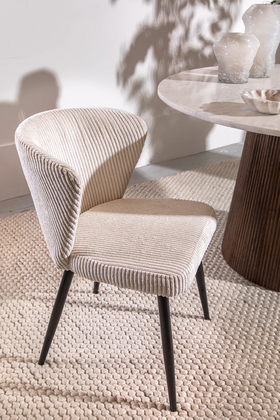 כיסא ישיבה פאלקון פרופיל קלאסי בגוון בהיר. פריט ריהוט בעיצוב קלאסי, מורכב תושבת ומשענת מרופדים בד קורדורוי. כיסא מושלם לשילוב סביב שולחן פינת האוכל, לנראות מראה אלגנטי.