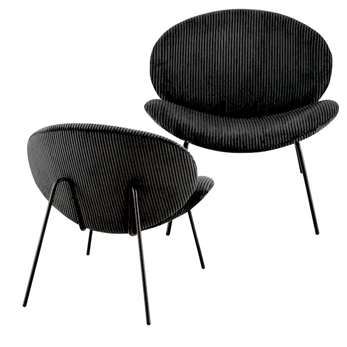 כיסא אירוח לייזי מדיסון בצבע שחור. כיסא מרופד משענת ותושבת בד קורדורוי, הנישא על רגלי מתכת שחורות.