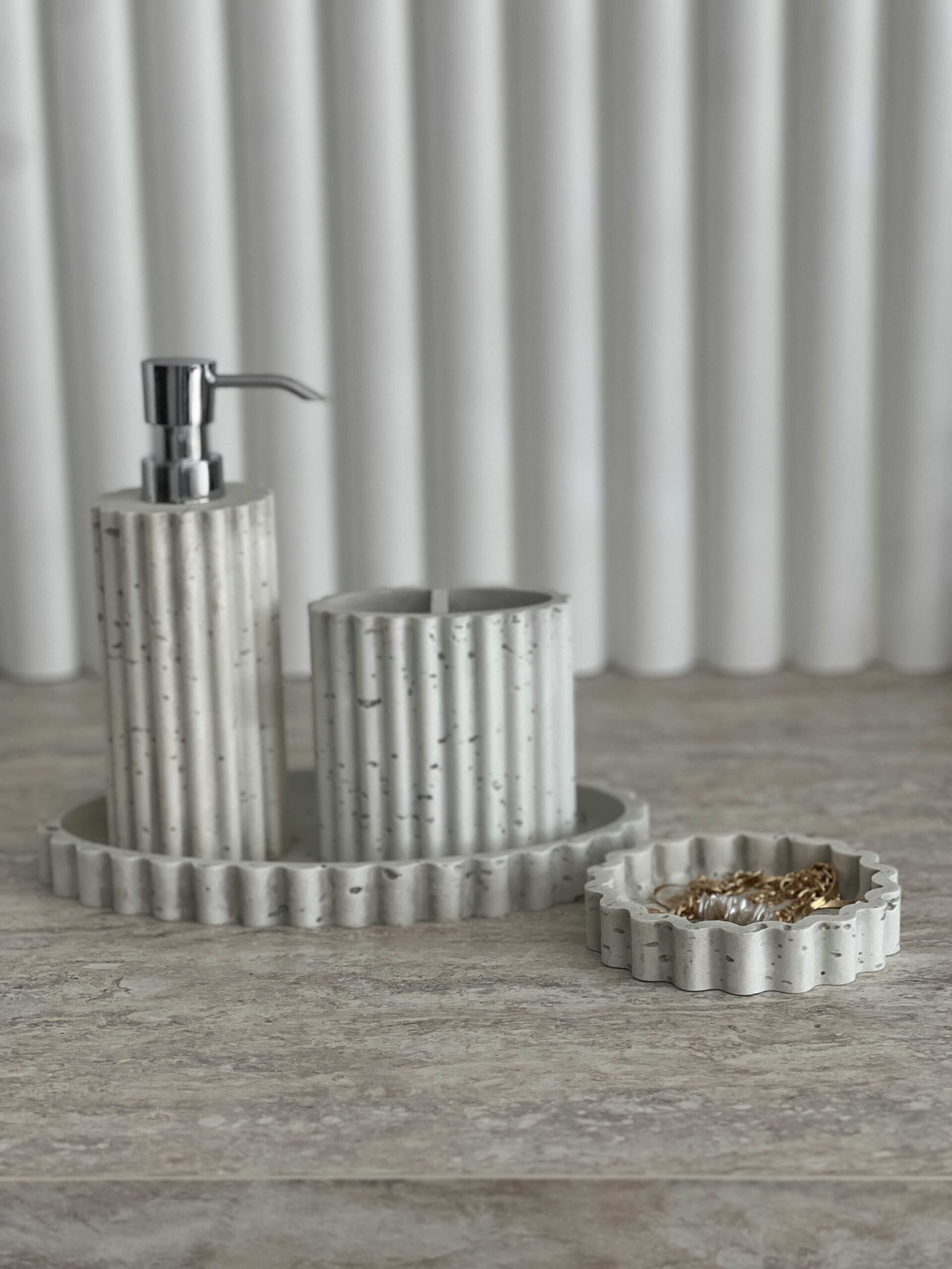 סט חדר רחצה דמוי אבן 4 חלקים.