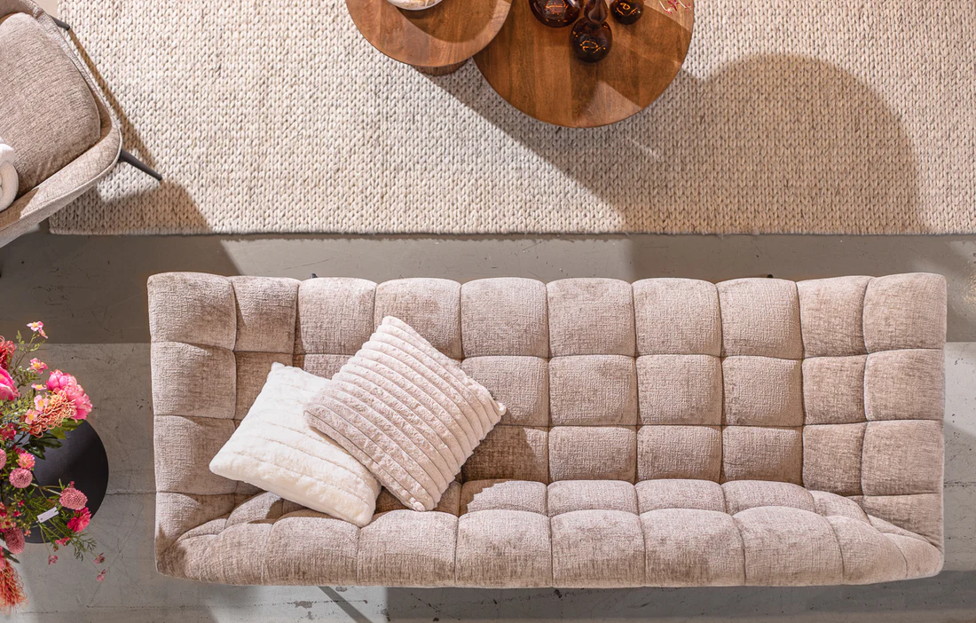 ספה מיסטי בקו מודרני בצבע בז'. ספה בדיגום קפיטונאז' ושילוב רגלי מתכת זוויתיות. ספת אירוח מפנקת מעוצבת סילואט ייחודי. פריט ריהוט מושלם עם אמירה עכשווית
