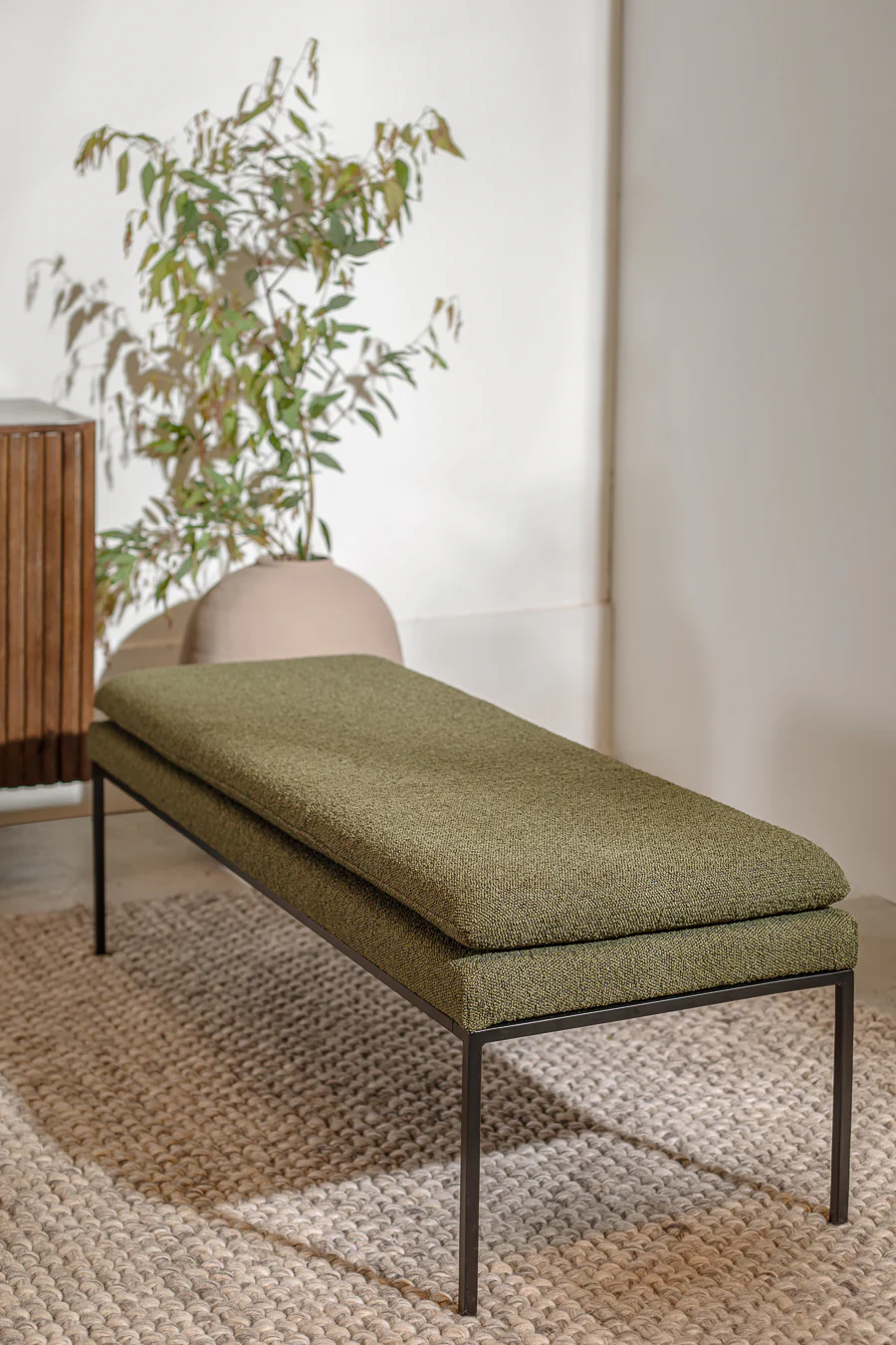 ספסל מלבני ריקו בגוון חום. ספסל אירוח מושלם המעוצב שכבת בסיס וכרית מרופדים. ספסל ישיבה מנימליסטי שכולו סטייל עכשווי.