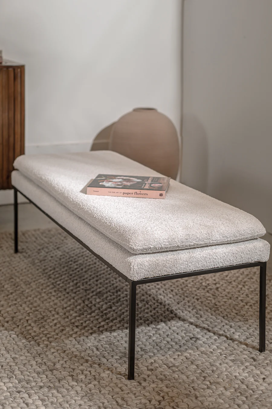 ספסל מלבני ריקו בצבע לבן. ספסל אירוח מושלם המעוצב שכבת בסיס וכרית מרופדים. ספסל ישיבה מנימליסטי שכולו סטייל עכשווי.