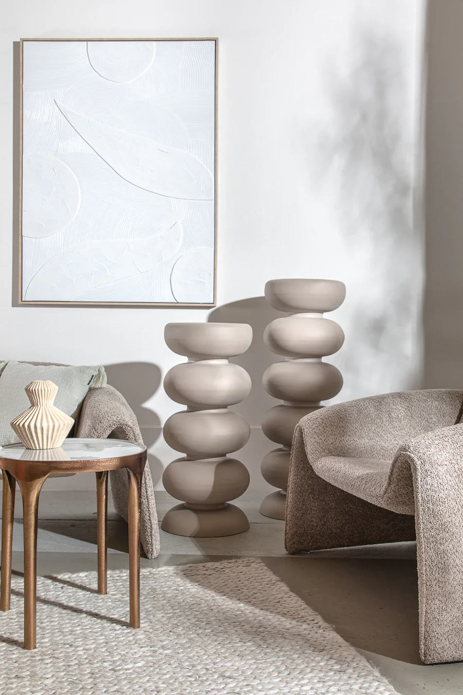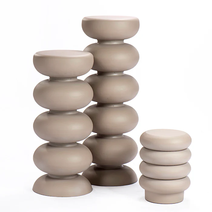 פודיום מתכת אייקון רינג פרופיל גלי בצבע אפור. סטול מעוצב טבעות מחוברות לגובה, מושלם כמעמד פיסולי לעציץ או כשולחן צד.