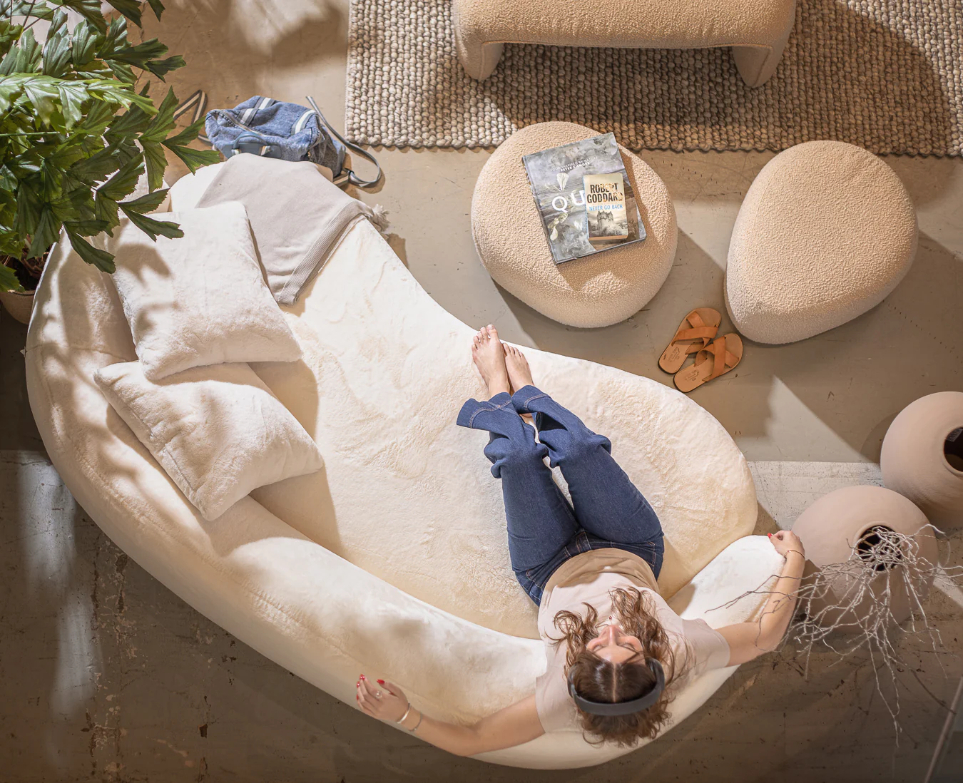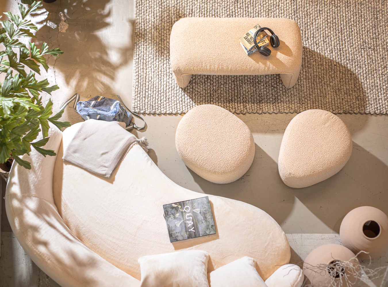 פוף אורניק לורן פרופיל גיאומטרי בצבע בז'. הדום ישיבה ייחודי לשילוב בכל חלל מגורים.