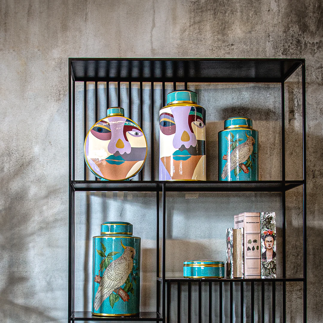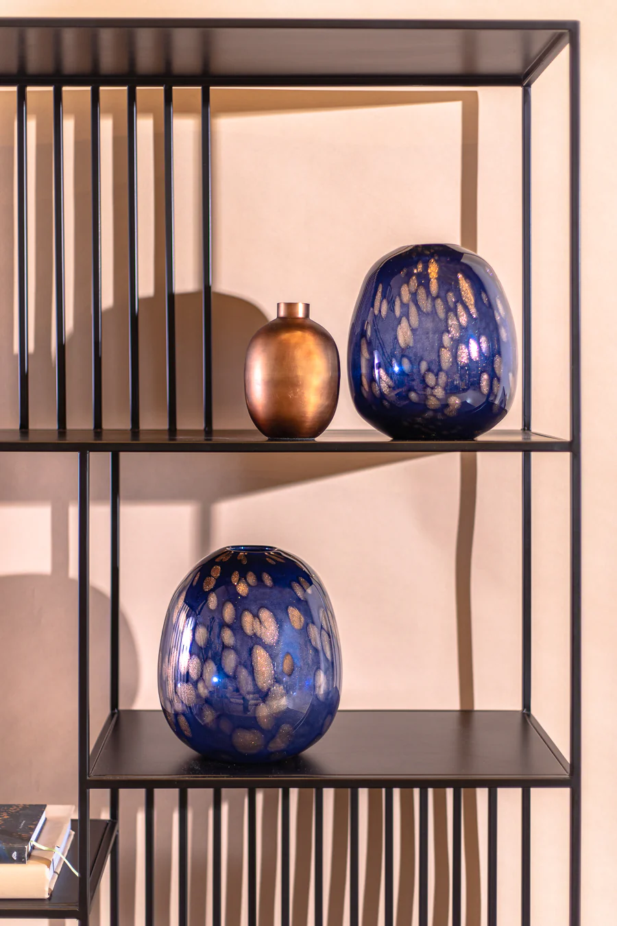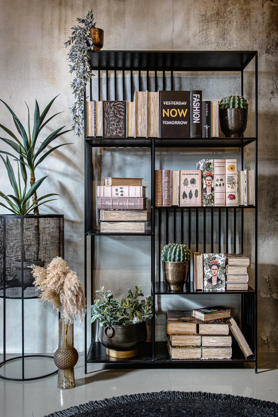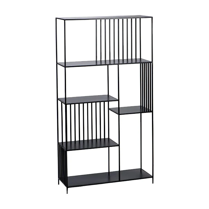 ארון קלי מתכתי חשוף למחצה בצבע שחור. יחידת איחסון גבוהה המעוצבת במתח שבין מידוף גלוי ליחידה סגורה. פריט ריהוט במראה תעשייתי אדג'י.