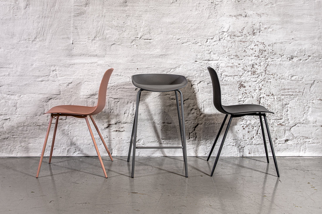 כיסא בר רינו בצבע אפור. כיסא גבוה מעוצב one piece קולור בלוק העומד על רגלי מתכת בצבע זהה . כיסא ישיבה מושלם לאירוח מסביב דלפק, מרפסת הבית.