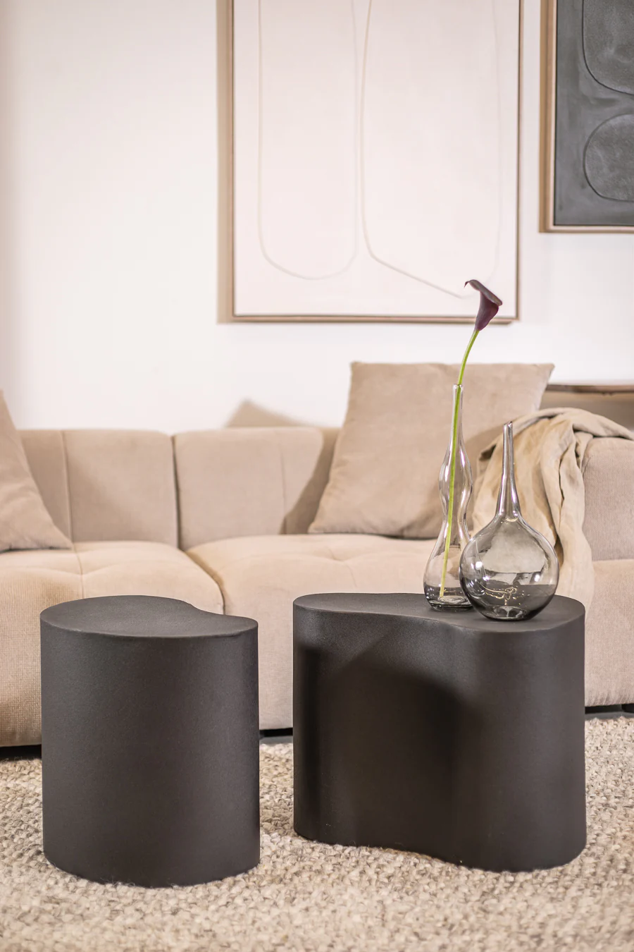 שולחן אורגניק פרופיל אמורפי בצבע שחור. שולחן אירוח מתכתי בעיצוב אותנטי עכשווי.