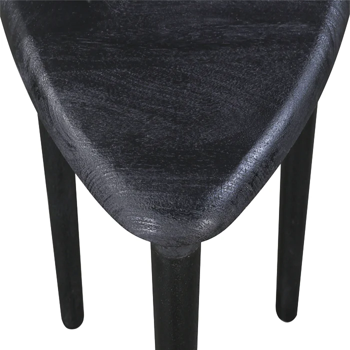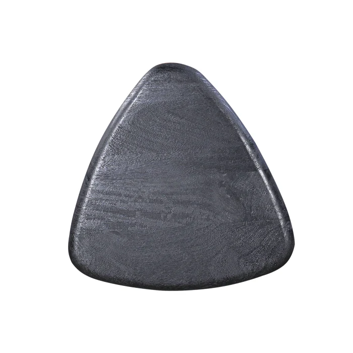 שולחן גיאומטרי לונה בצבע שחור. שולחן צד ייחודי, המעוצב פלטת עץ משולשת הנישאת על אגן רגלי עץ בגימור אותנטי. שולחן אירוח אל זמני במרקם ונוכחות. שולחן זה הוא רהיט מסדרת שולחנות לונה