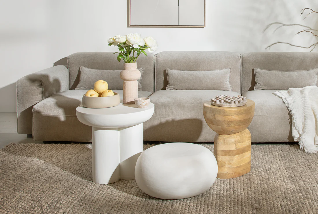 שולחן קפה מדויק לעיצוב חלל מגורים בגימור אבן גיר.