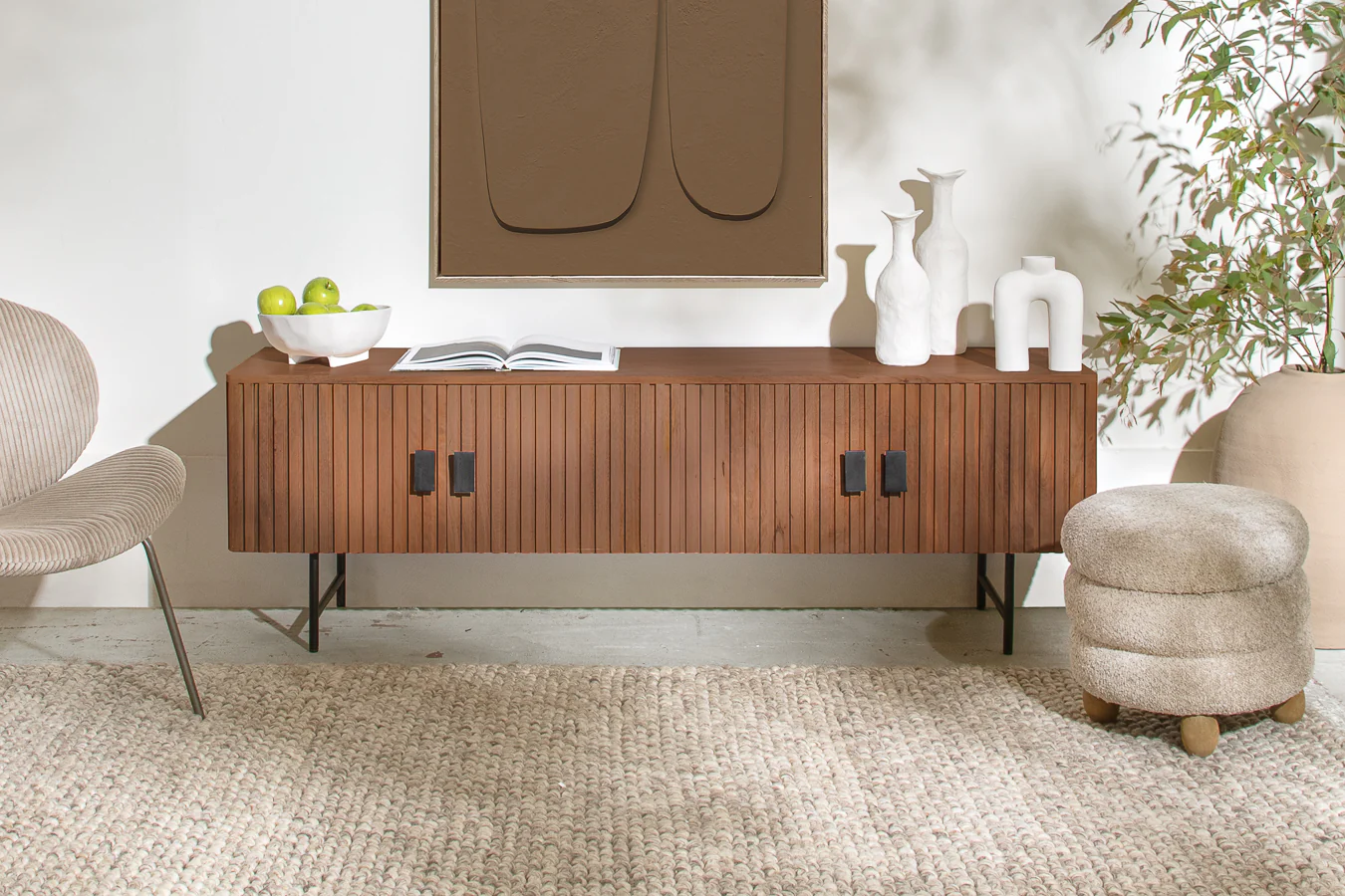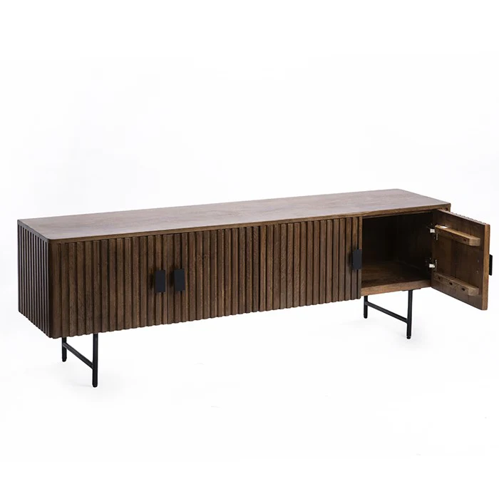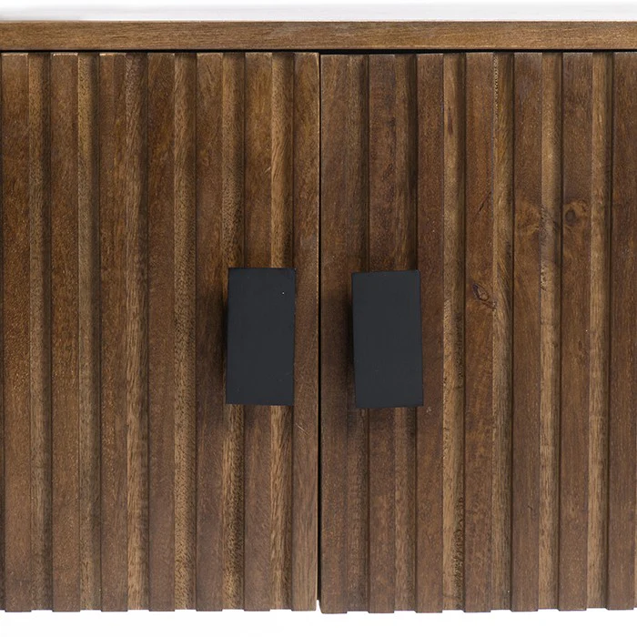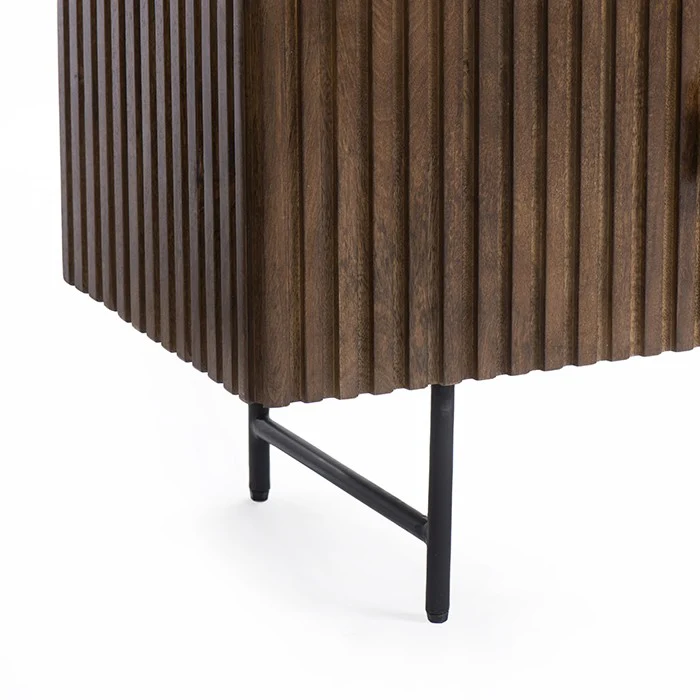 שידת מדפים עשויה עץ מנגו במראה אדג'י. שידת איחסון פרקטית בעיצוב מחוספס בגוון חום עמוק. רהיט חובה לכל חלל מגורים המאובזר בסגנון טבעי עם נגיעה טרנדית.